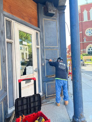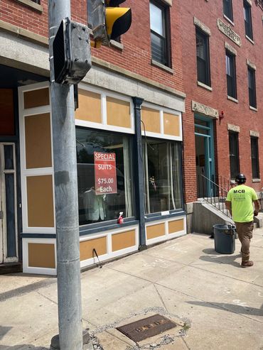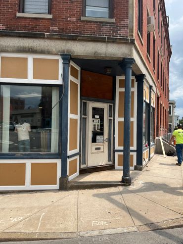 This Multi-Phase, Multi-Building Project took place over commercial buildings in Roxbury. Photos Shown of Building A Storefront Reno. Removal of existing paneling and installation of news paneling across entire storefront. Project included new framing, stairway repairs, trim and access repairs.