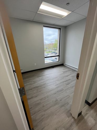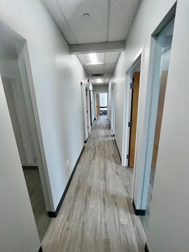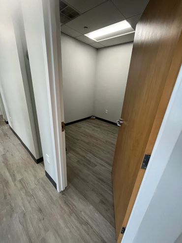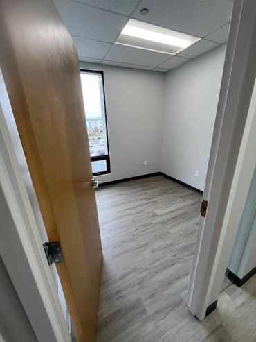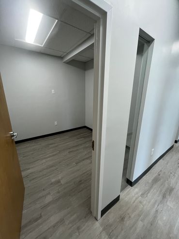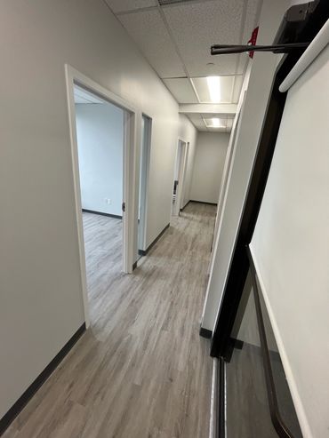 This office build-out started with a full demo - removal of carpet, glass and former doors. Framing new offices as well as installation of new glass lites and doors throughout. Full electrical - wiring of new offices as well as installation of new LED fixtures across the space. New flooring and paint wrap it all together making this new space sleek and modern compared to its prior dated carpet drab.
